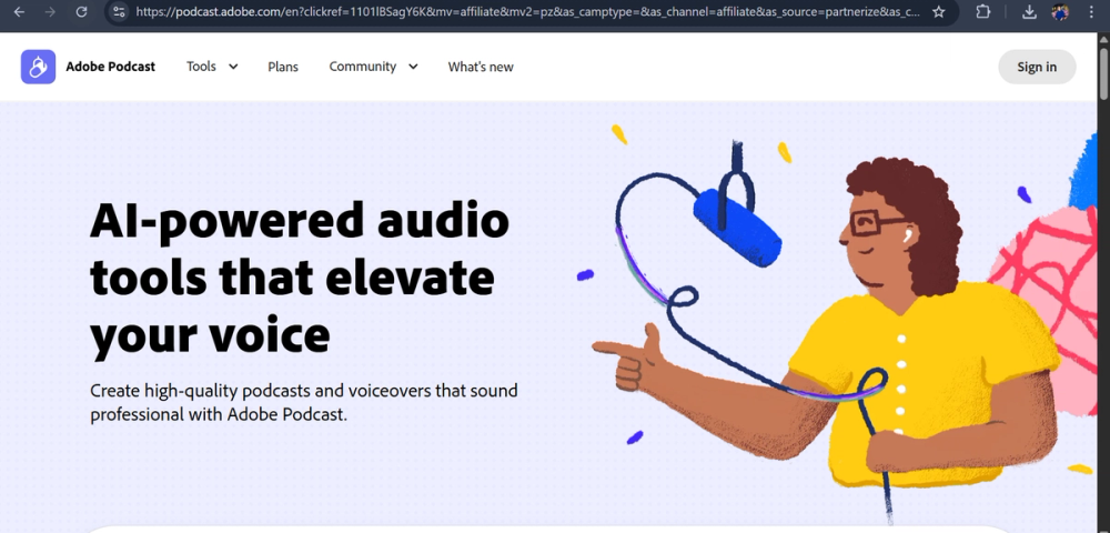Adobe Podcast AI is a browser-based suite of tools for recording, editing, and enhancing audio, using AI to deliver professional-grade podcasts and voiceovers effortlessly.