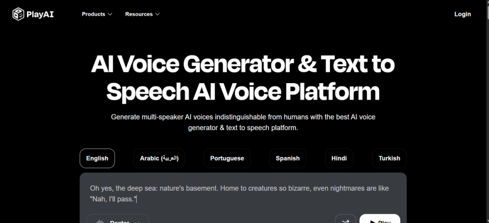 PlayAI is a cutting-edge voice AI platform for businesses and developers, offering realistic conversational AI via advanced voice agents, text-to-speech, real-time synthesis, NLP, voice cloning, and multilingual support.
