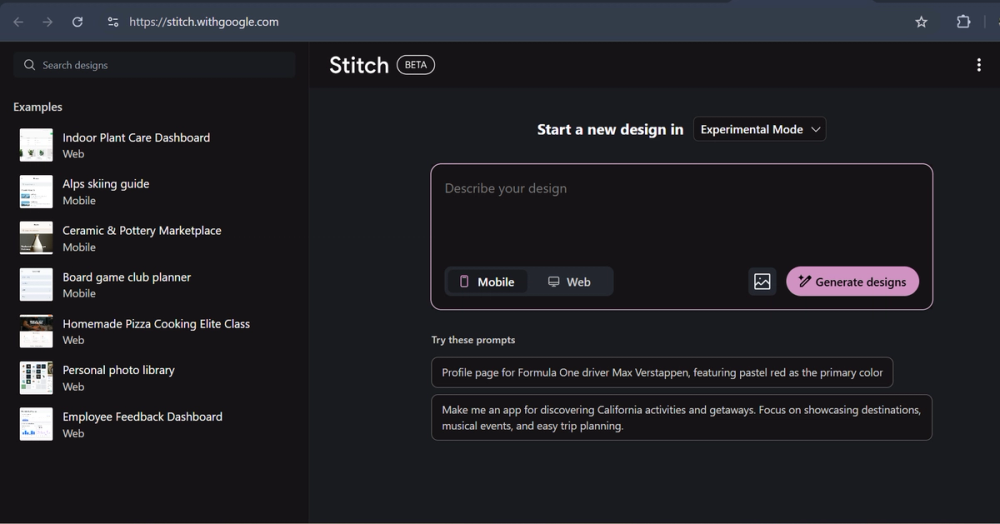 Stitch by Google is an AI-powered tool that transforms text prompts into professional UI designs in seconds. Describe your app idea and get exportable code or Figma-ready files. Revolutionize prototyping today.
