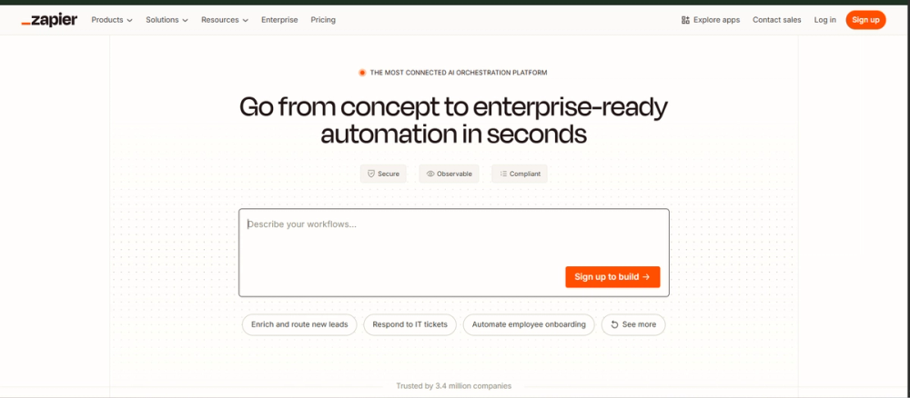 App Integration: Connects over 5,000 apps, including Gmail, Slack, Trello, and Salesforce, for seamless data flow. Zaps Creation: Build automated workflows (Zaps) with triggers and actions to perform tasks across apps. No-Code Interface: User-friendly platform requiring no coding skills to set up automations. Multi-Step Zaps: Create complex workflows with multiple actions and conditions. Conditional Logic: Apply filters and logic to execute tasks only when specific criteria are met. Scheduling: Schedule Zaps to run at specific times or intervals. Team Collaboration: Share Zaps and workflows with team members for collaborative automation. Customizable Notifications: Send automated emails, Slack messages, or other notifications. Data Formatting Tools: Transform and format data (e.g., dates, text) within workflows. API Access: Advanced users can integrate custom apps via Zapier’s API.